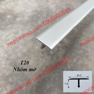 Nẹp nhôm T20 hay nẹp T20 nhôm là dòng sản phẩm nẹp trang trí chữ T bằng hợp kim nhôm 6063 với lớp mạ Anode cao cấp trên bề mặt đảm bảo được độ mịn và bền màu nên được dùng chủ yếu làm chỉ trang trí trên trần, tường, vách hoặc làm nẹp nối sàn gỗ, ngăn cách giữa các bề mặt sàn gỗ với nhau, sàn gỗ với gạch, đá…